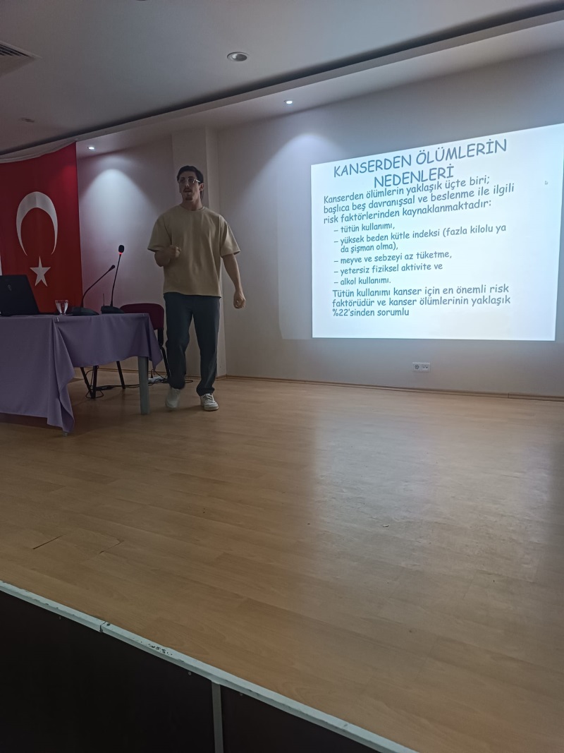 Konferans kapsamında Kocaeli İl Sağlık Müdürlüğünce görevlendirilen Doktor Batuhan KOMAY ve Hemşire Nurgül ÖZTÜRK tarafından kanser türleri, kanser belirtileri, kanserde erken tanı ve bu tanı merkezleri hakkında bilgiler verilmiş; soru – cevap bölümü ile program sonlandırılmıştır.